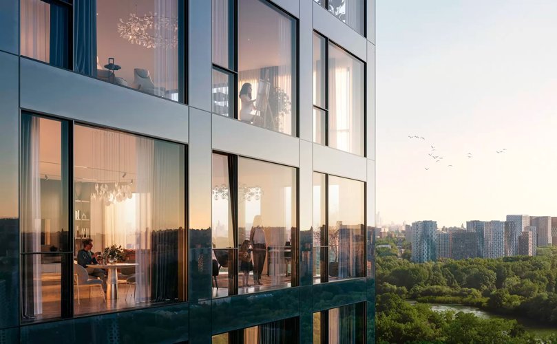 Из панорамных окон квартир открываются виды на парк «Долина реки Сетунь» и центр Москвы.