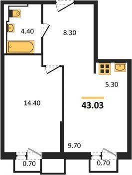 В Sky Sputnik можно выбрать апартаменты с готовой, улучшенной отделкой или вариант без нее. Вы получите ключи от квартиры, где мы уже установили натяжные потолки, поклеили обои под покраску, в комнатах положили напольное покрытие в светлых оттенках, а в санузлах — керамогранит.